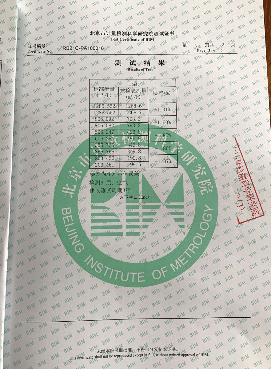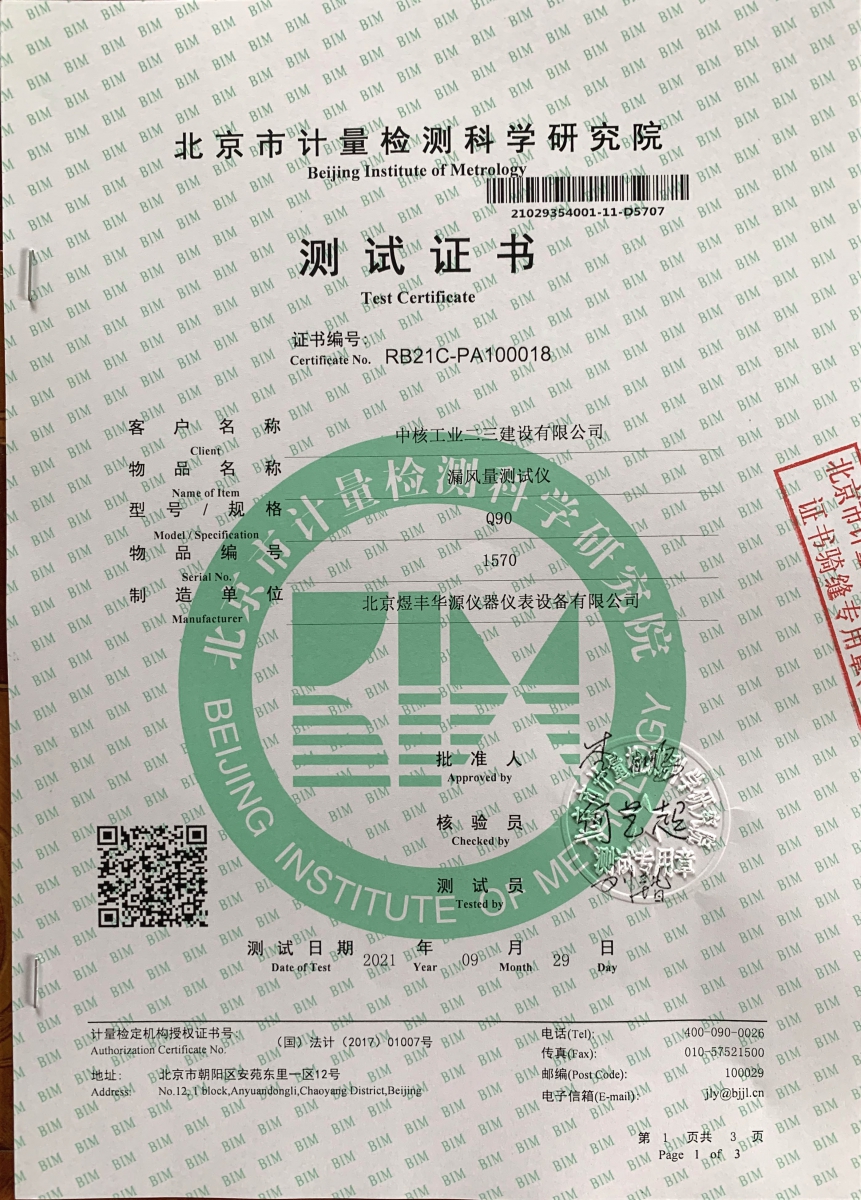 北京计量院检测证书
